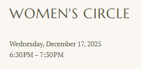 A women’s Circle at Willowdale Holistic Center offering a sacred, judgment-free space for sharing, reflection, and sisterhood. Each gathering includes meditation, themed contemplation, and a talking stick practice, fostering authenticity, compassion, and community, ending with a blessing.